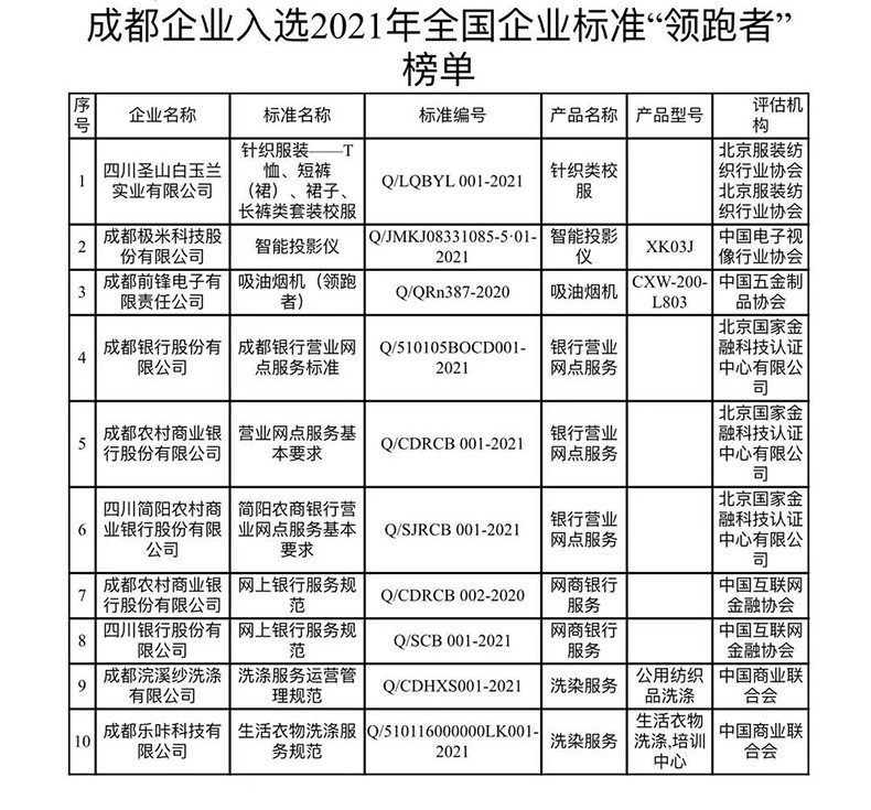 成都市入選全國“領(lǐng)跑者”榜單的企業(yè)標(biāo)準(zhǔn)將產(chǎn)生示范帶動(dòng)作用,推動(dòng)質(zhì)量提升,促進(jìn)消費(fèi)升級,助推成都相關(guān)產(chǎn)業(yè)邁向價(jià)值鏈中高端,更好滿足人民日益增長的美好生活需要。