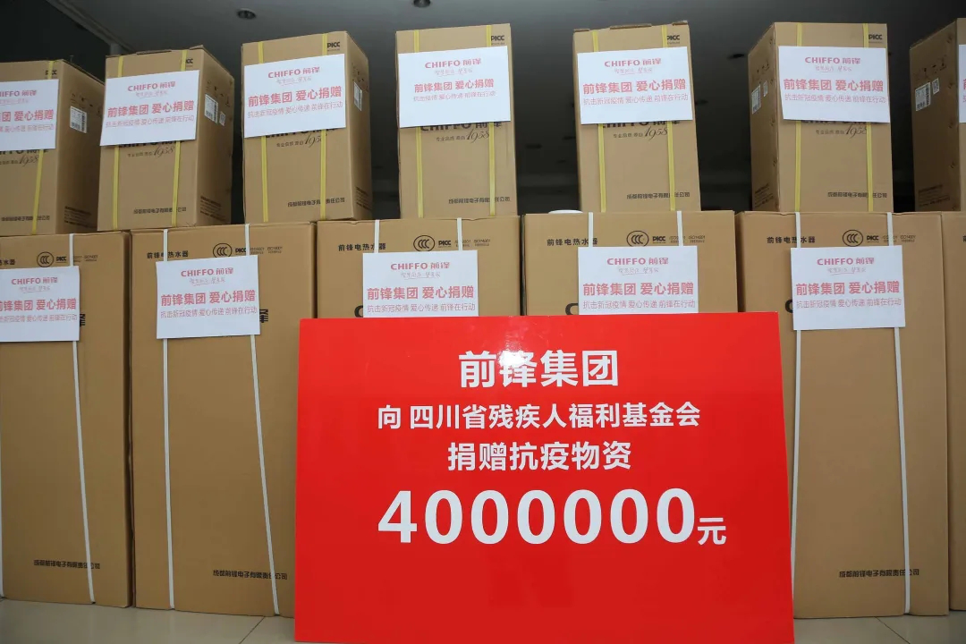 作為公益事業(yè)的積極倡導(dǎo)者,在今年新冠肺炎疫情發(fā)生后,前鋒集團(tuán)已通過四川省殘疾人福利基金會愛心捐贈了總價(jià)值約400萬人民幣的防疫物資,其中包含前鋒廚電產(chǎn)品(前鋒電熱水器、前鋒空氣凈化器)1600臺。這批有利于疫情防控工作的防疫物資正通過四川省殘疾人福利基金會傳遞到眾多困難家庭群眾的手中。